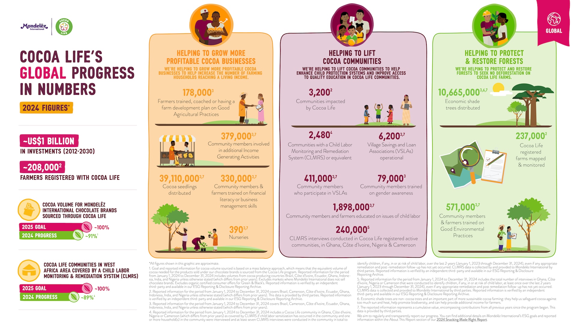 - Unser Ziel ist es, regelmäßig und transparent über unsere Fortschritte zu berichten. Weitere Details zu den ESG-Zielen und gemeldeten Informationen von Mondelēz International finden Sie im Abschnitt „Über diesen Bericht“ unseres Berichts „2024 Snacking Made Right“.↩